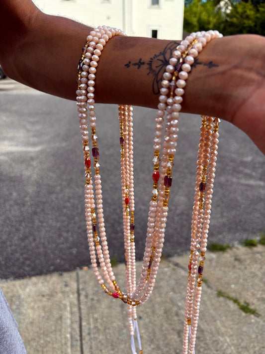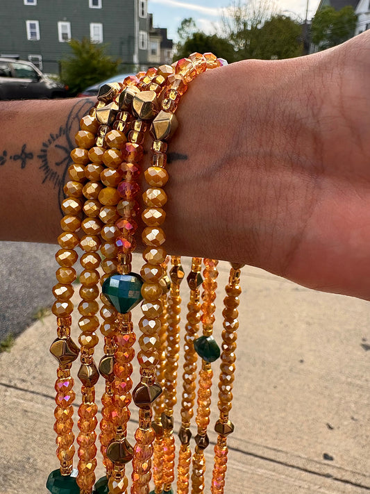 Elevate your waist ✨ with handcrafted strands made to glow. Featuring rich beads, gold accents, and goddess energy 👑 — these waistbeads are made to be tied on, felt, and flaunted. Adorn your body, embrace your beauty 💫.